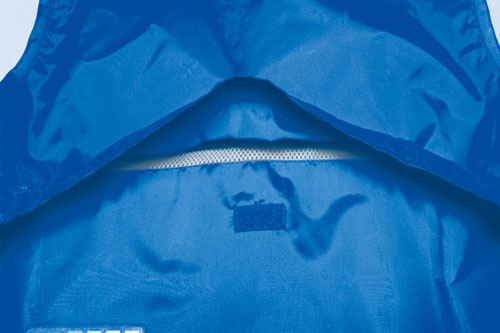 ワンタッチ留めのベンチレーション。背裏メッシュ仕様。