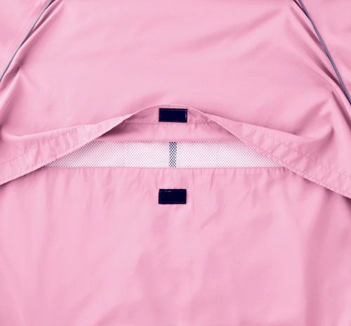 - ワンタッチ留めのベンチレーション。 背裏メッシュ仕様。